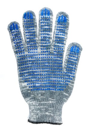 Перчатки 5 нитей серые с ПВХ 9 размер (в упаковке 10 пар)