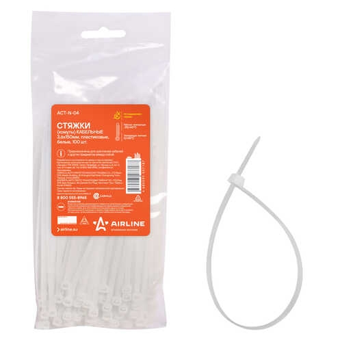 Хомут нейлоновый 3,6x150мм белый AIRLINE (упаковка 100шт) ACT-N-04