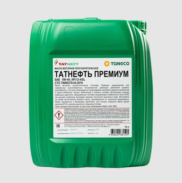Масло Татнефть МОТОРНОЕ Премиум 5W-40 CI-4/SL (п/с) 10л.