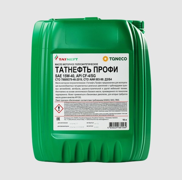 Масло Татнефть МОТОРНОЕ Профи 15W-40 CF-4/SH,SG (п/с) 10л.